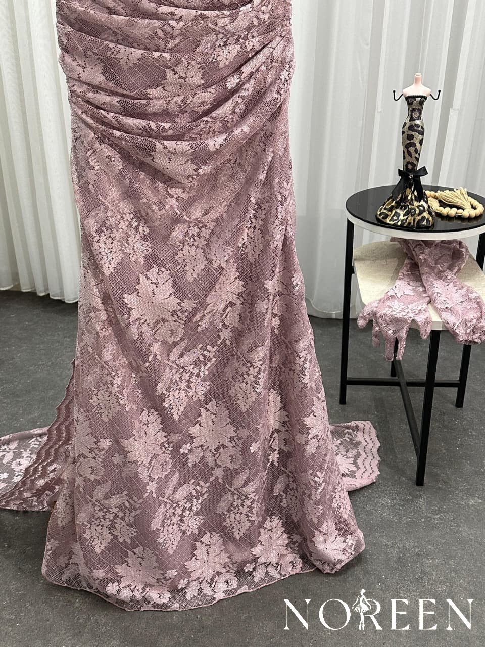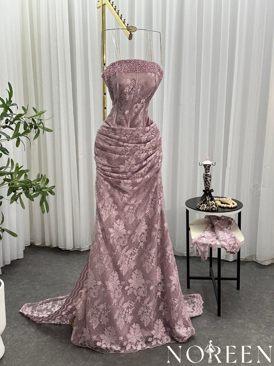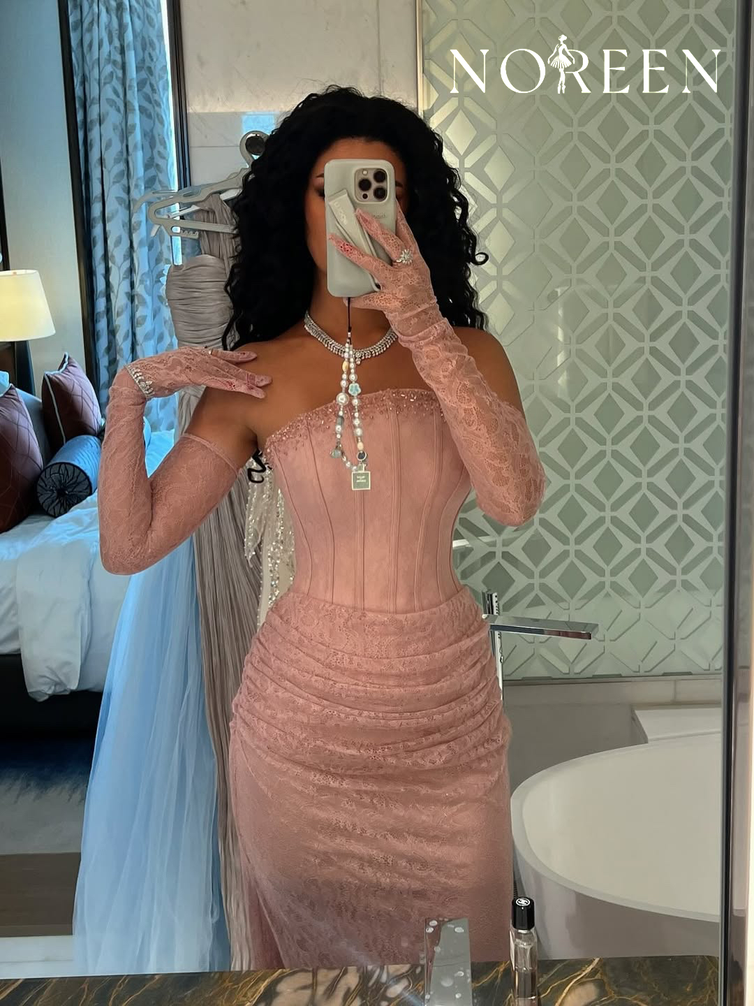 فستان دانتيل لمعه مطرز مع بطانه تفته سترتش