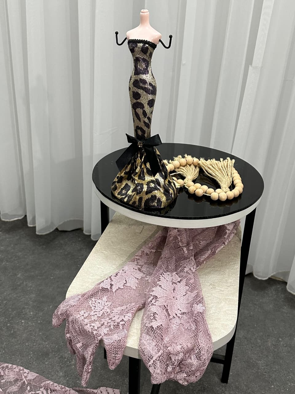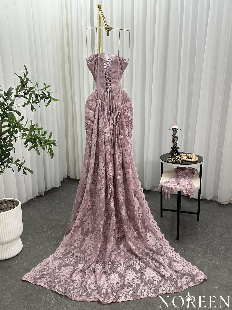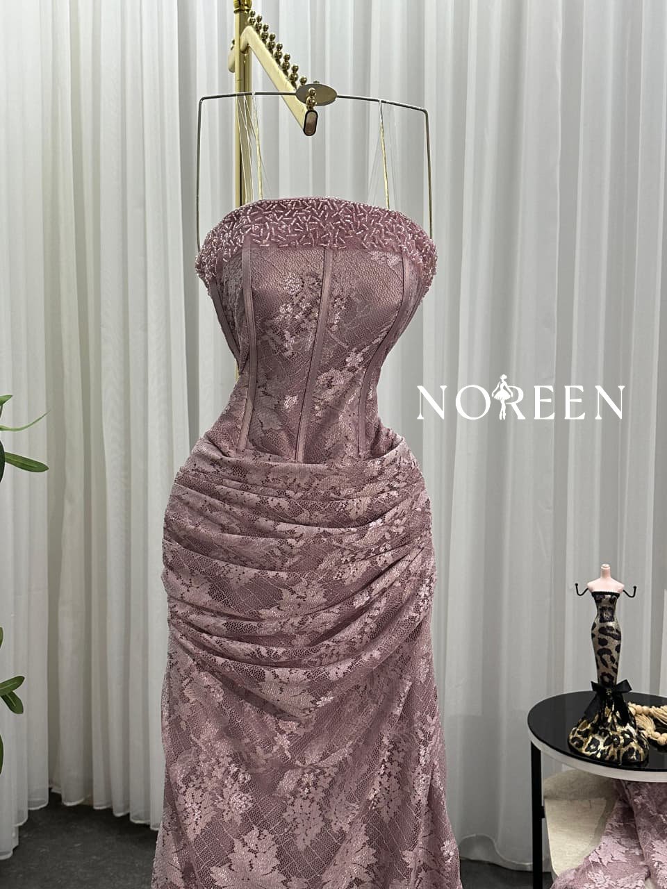 فستان دانتيل لمعه مطرز مع بطانه تفته سترتش