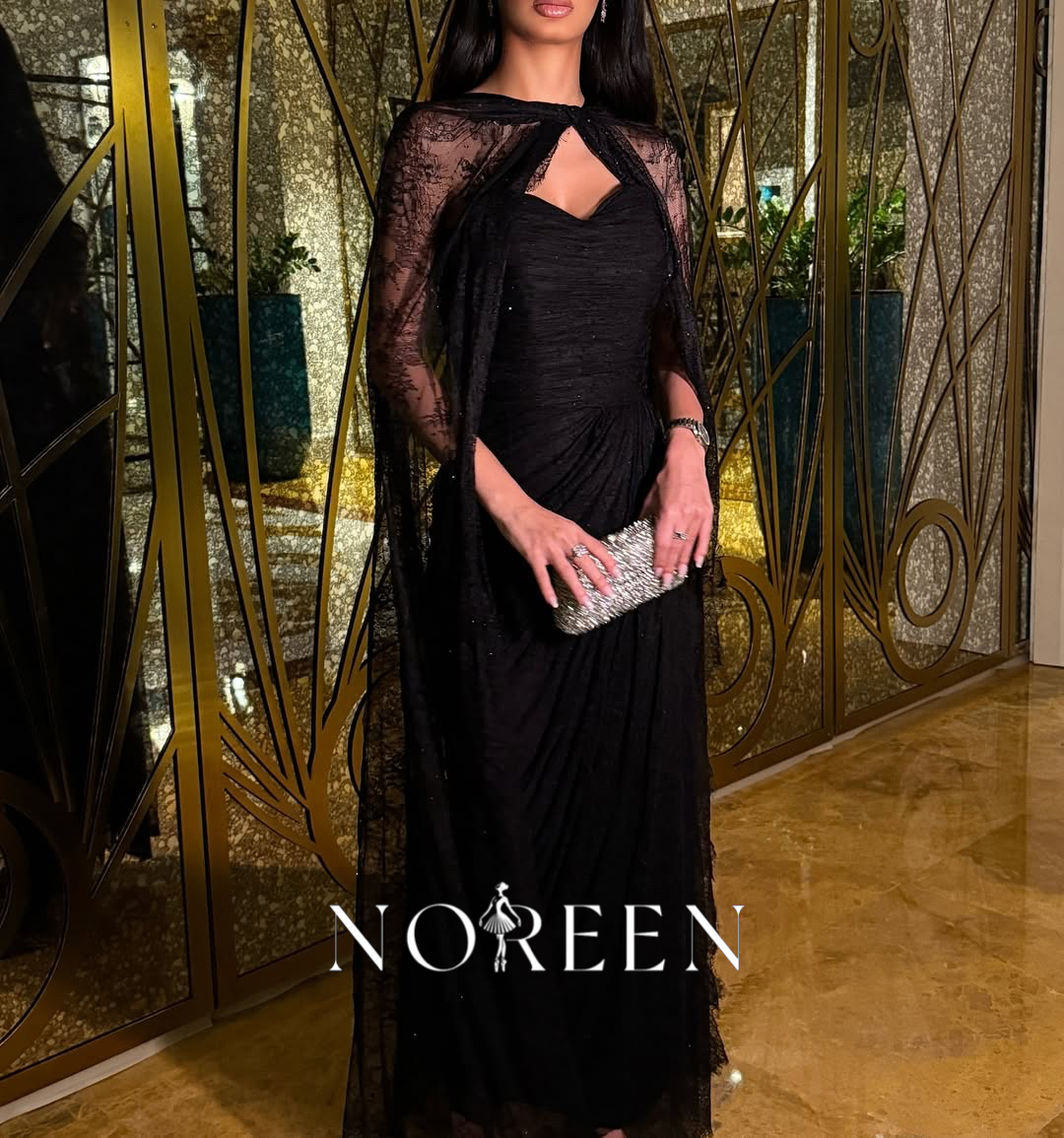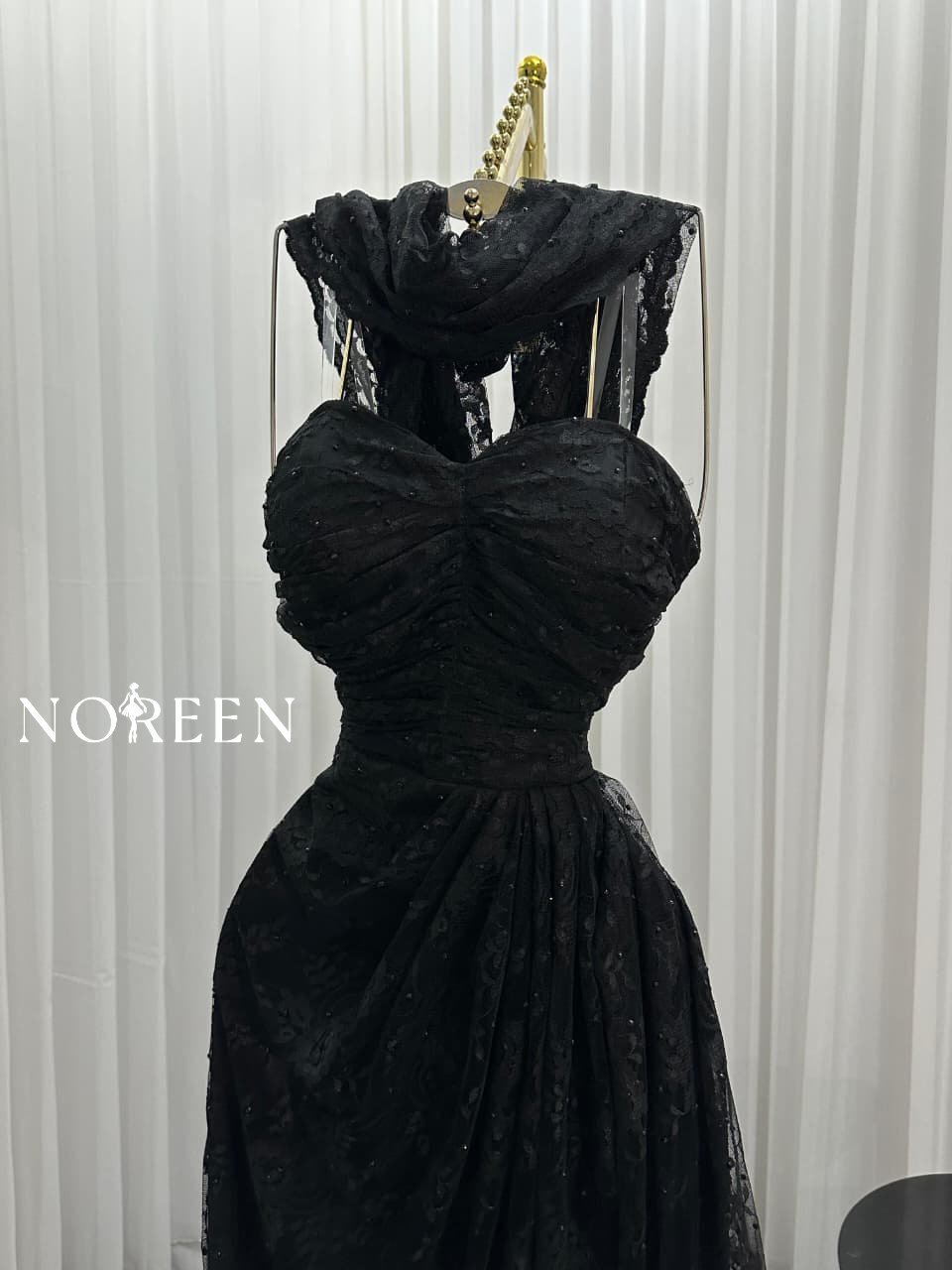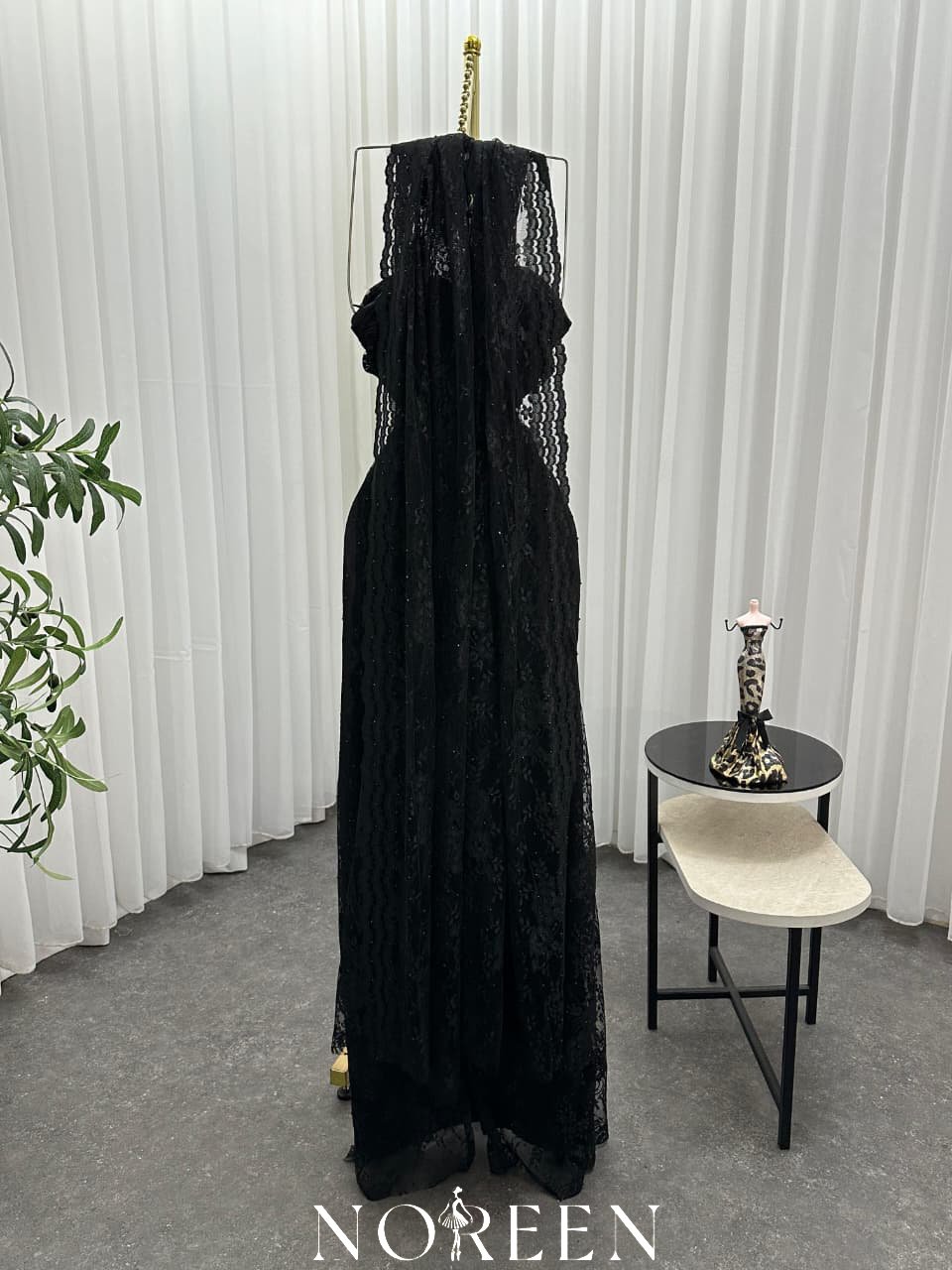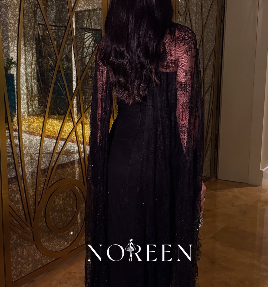 فستان دانتيل اسود مزين بفصوص