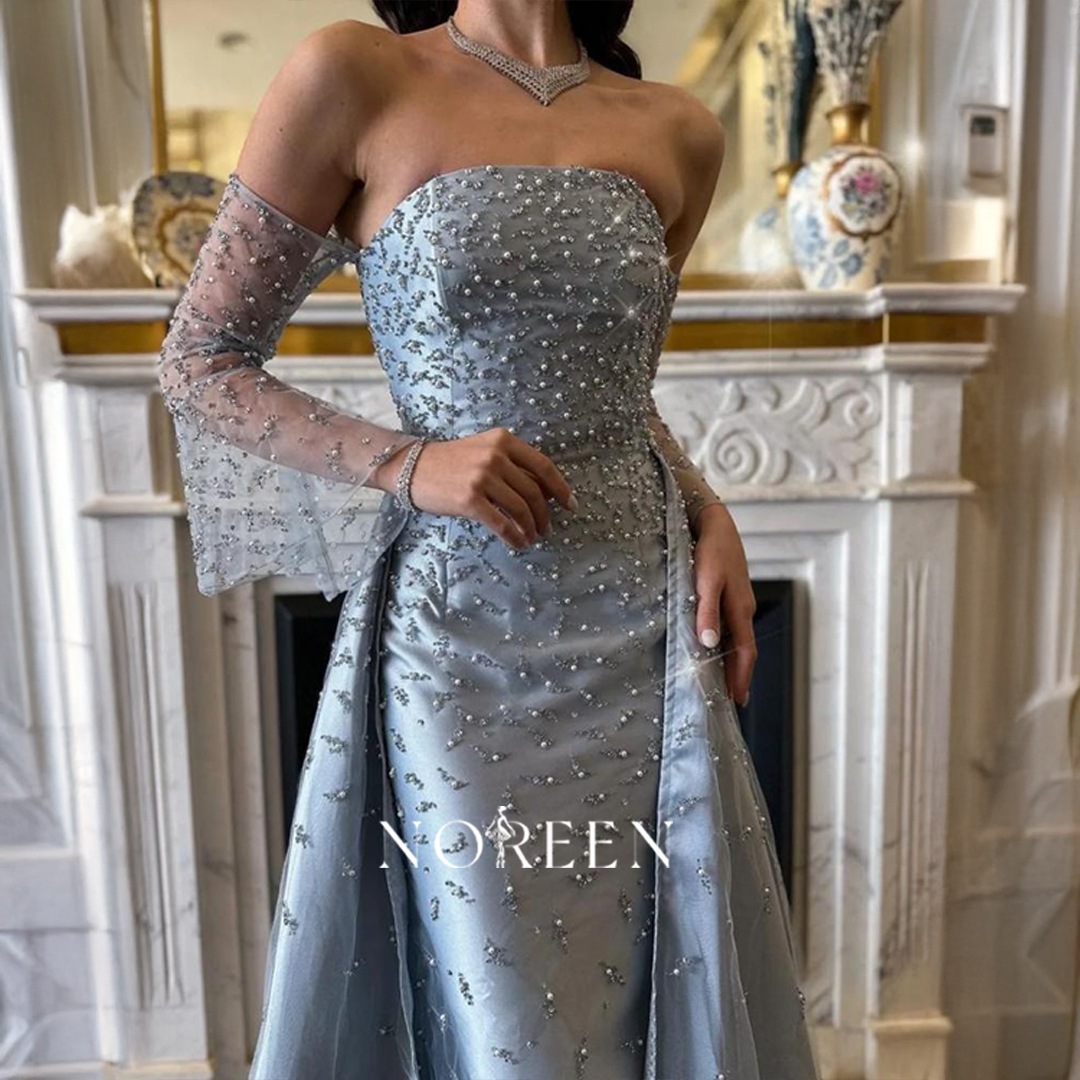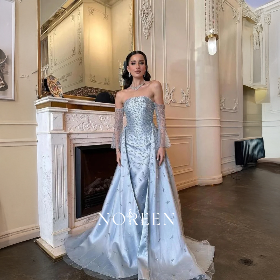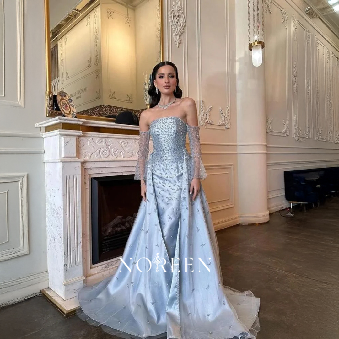 فستان إليانا الأزرق السماوي - أناقة التطريز ورقي الأكمام المنسدلة
